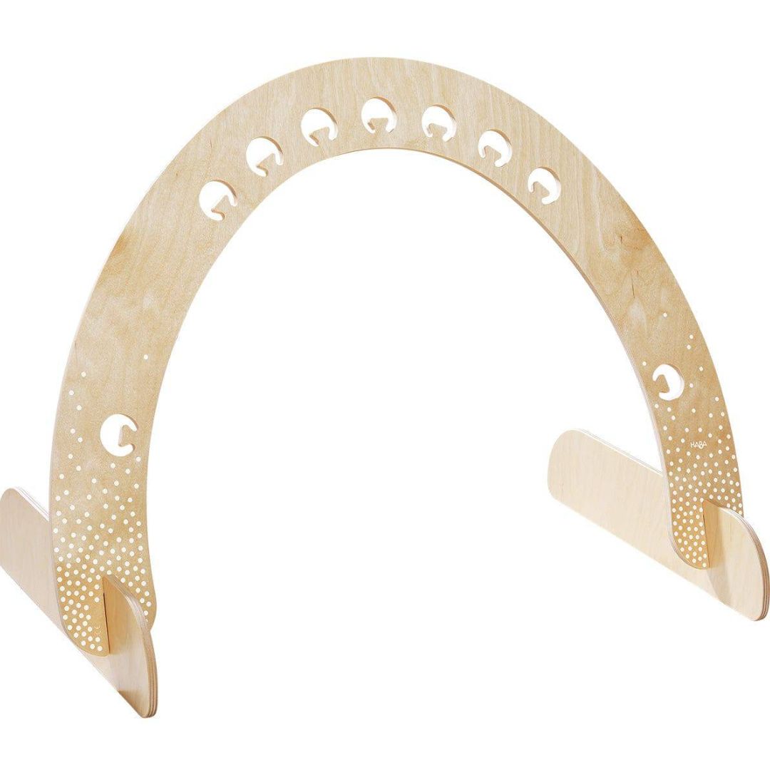 Create an arch of wonder and fun for your baby with the Wooden Dots Play Gym from HABA.
